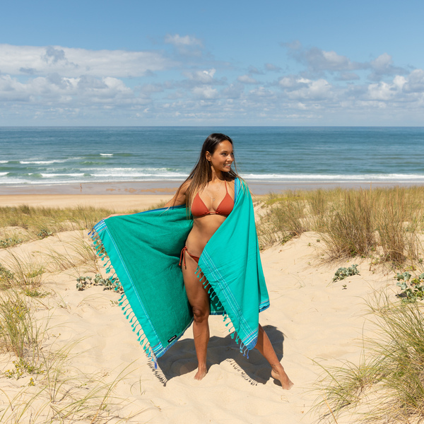 La serviette de plage en Kikoy est un produit 2 en 1 désormais incontournable pour vos moments de détente à la plage. D’un côté un tissu traditionnel d’Afrique de l’Est appelé le Kikoy fabriqué avec du coton peigné. De l’autre une fine serviette de plage en éponge pour vous sécher en revenant de votre baignade, avec une petite poche à l’intérieur. Un Kikoy-serviette chic et pratique à la fois.